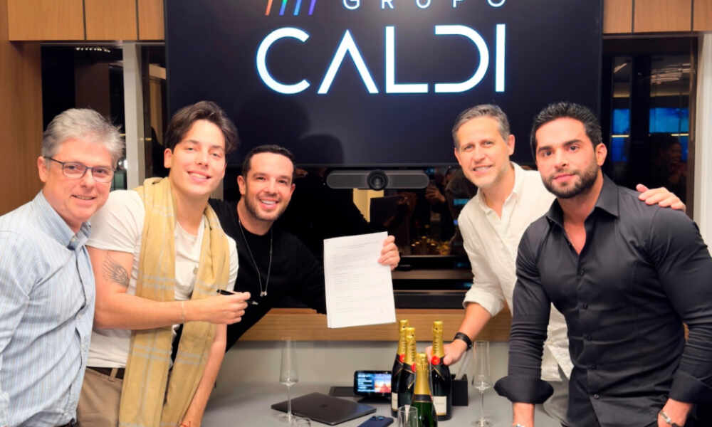 Na última terça-feira (15), o artista selou o contrato na sede do escritório em São Paulo, ao lado do empresário Leonardo Caldi e seus sócios Da...
