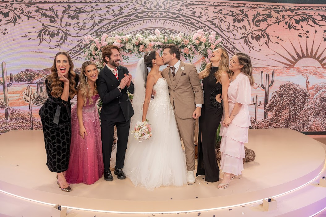 A história ganha ainda mais força com a participação de nomes consagrados do formato: o estilista Lucas Anderi, a confeiteira Beca Milano e a organizadora Mari Dedevits ajudam a transformar a história do casal em uma experiência inesquecível.