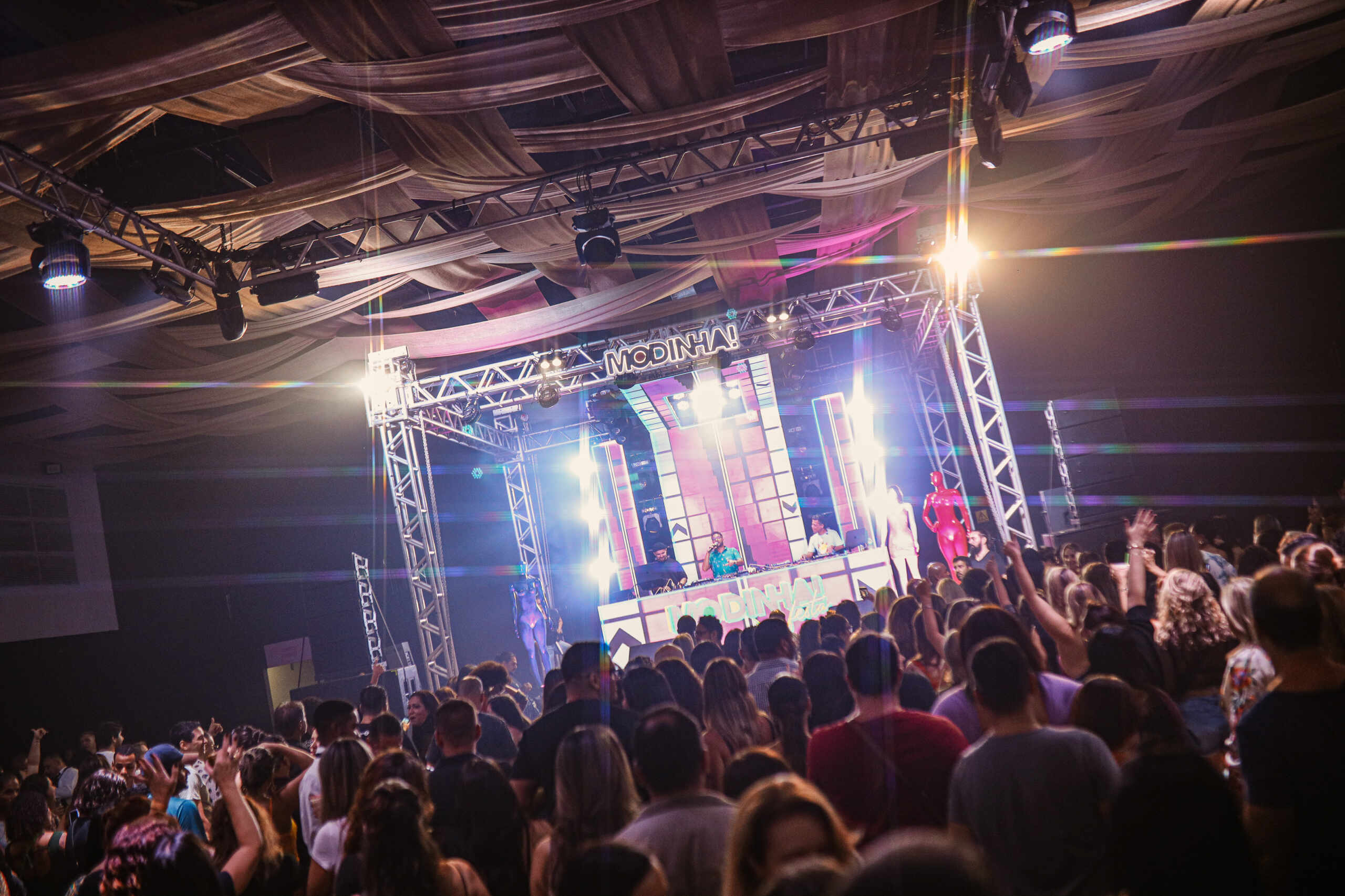 Já a pista Modinha, comandada pelos DJs João Rodrigo e Chu, trouxe os hits que marcaram gerações, passando pelo pop dos anos 90 e 2000, Summer Eletro Hits e o melhor do funk antigo. Um dos pontos altos da noite foi a participação especial do MC Andinho, que levou o público ao delírio ao relembrar sucessos como “Corpo Nu” e “Já é Sensação”.