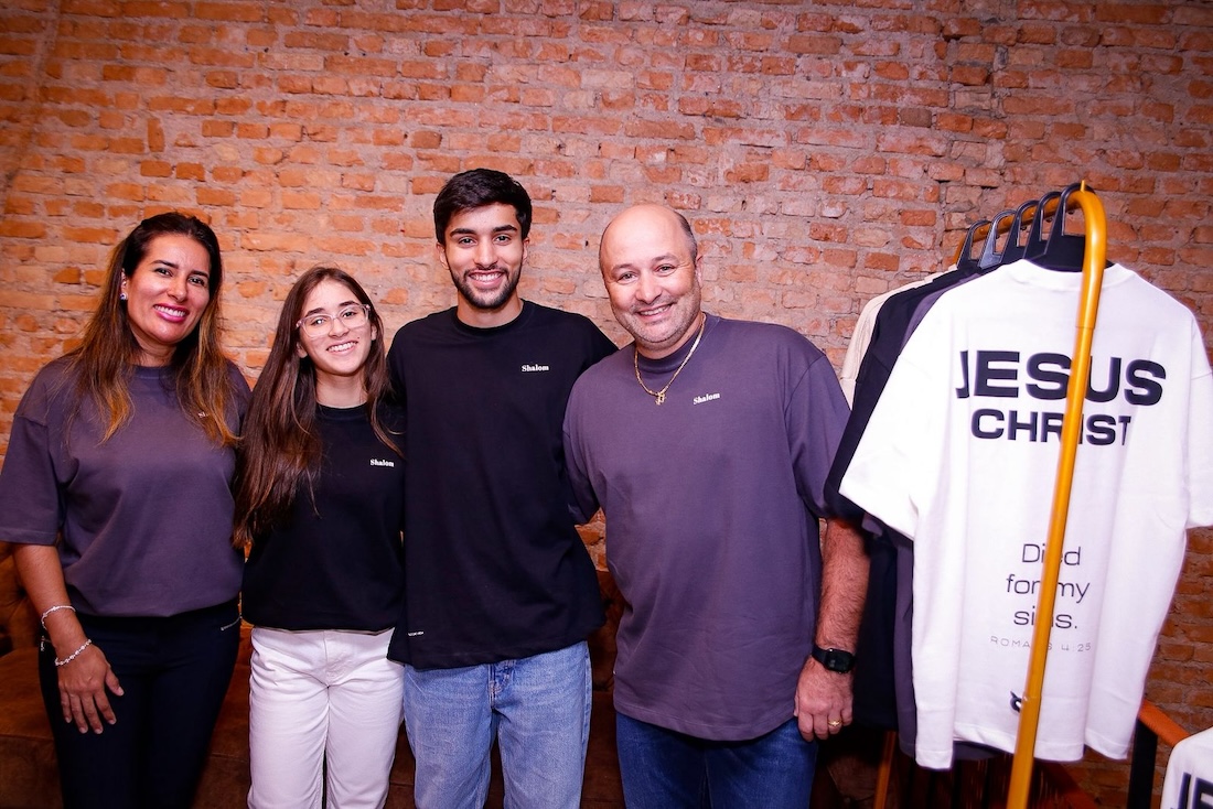 Aos 19 anos, Giovanni Vieira Palmuti idealizou mais que uma marca: fundou um propósito. Nascia a Shalom, com o apoio de seus pais, André Palmuti e Juliana Vieira Palmuti, como um movimento que une moda, fé e missão.