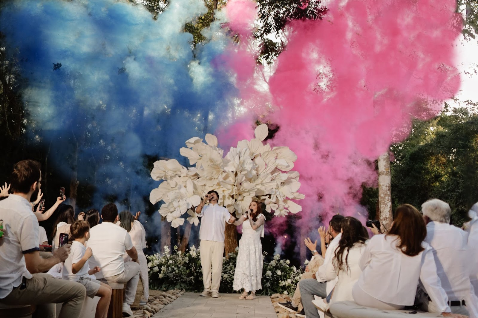 Julliany Souza e Léo Brandão celebram chá revelação dos gêmeos