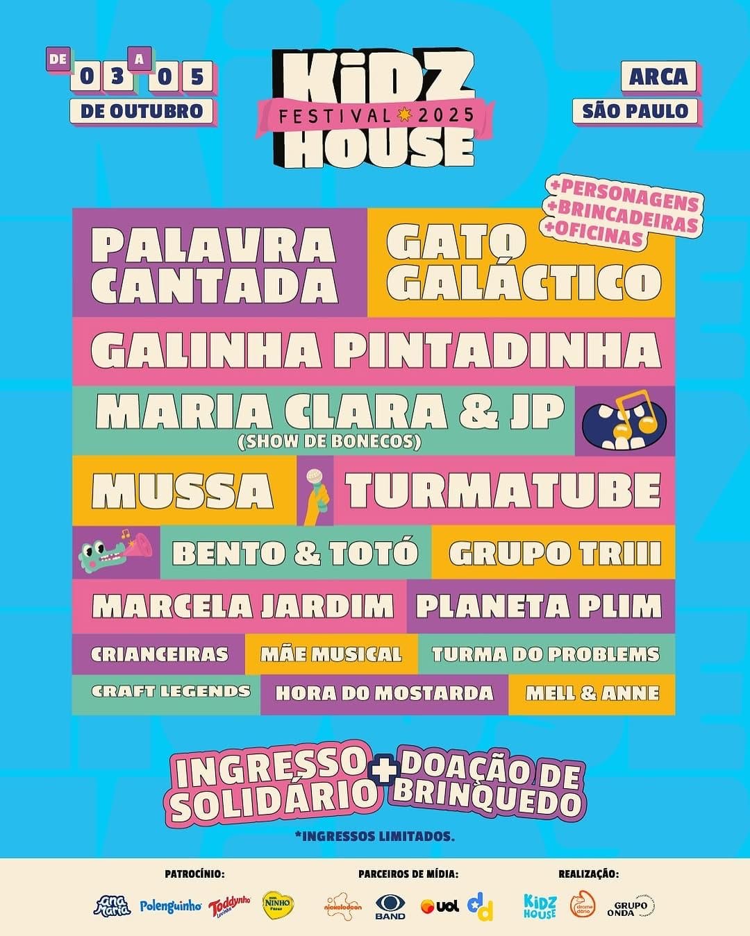 Ingressos: a partir de R$ 79 (individual) ou R$ 349 (combo família) – https://ingresse.com/kidz-house-festival-2025-sao-paulo/