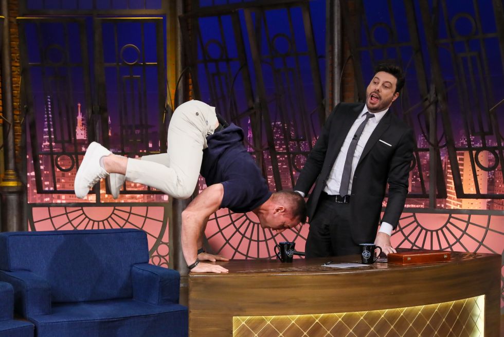 Luiz Mesquita impressiona Danilo Gentili com exercícios de calistenia no The Noite
