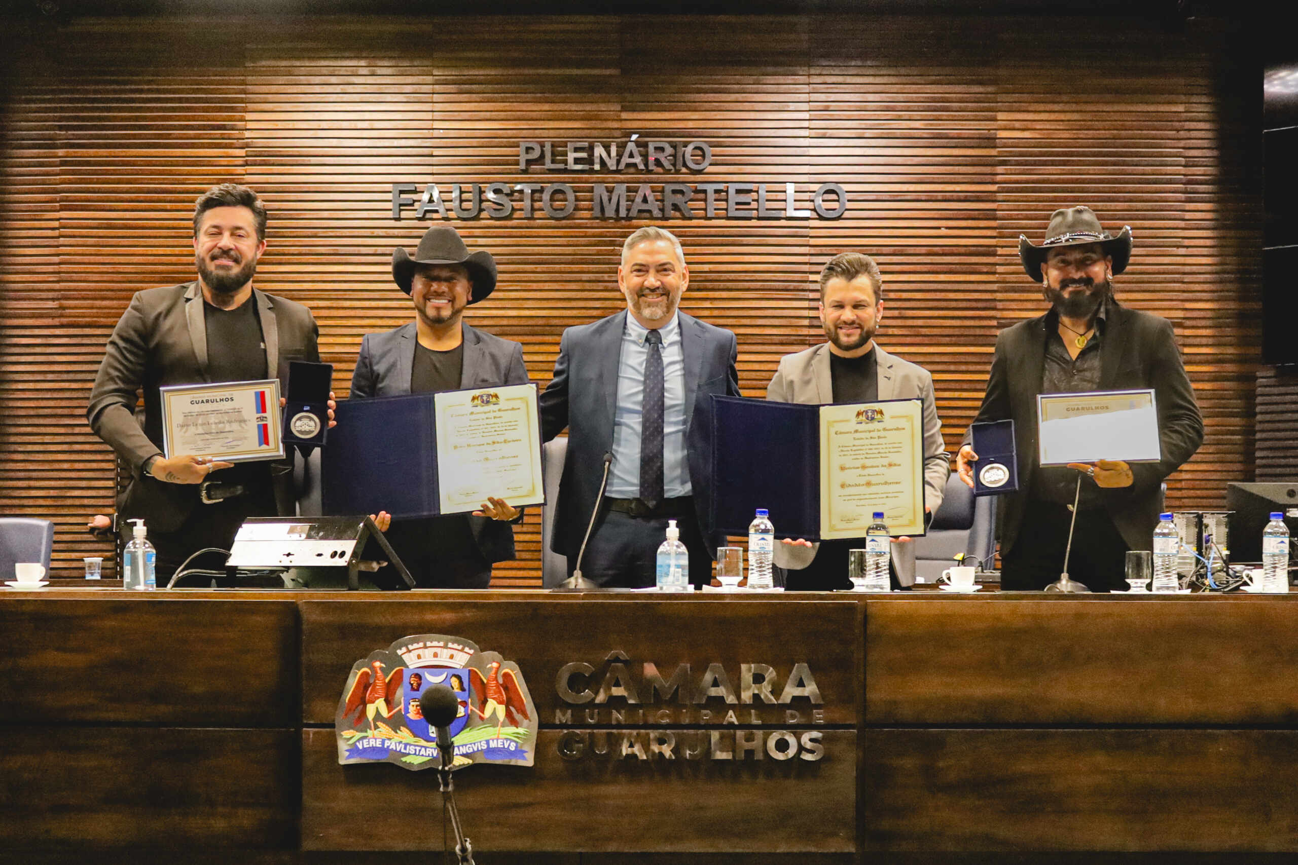 “É emocionante voltar para a nossa casa e receber esse reconhecimento. Guarulhos é parte da nossa história e sempre será”, declarou Edu Araújo durante a cerimônia.